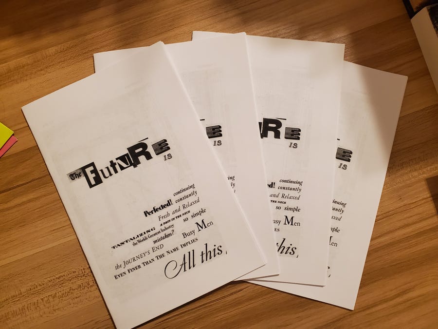 So, I asked several friends and friends-of-friends to contribute something about “the future” to art_irl. On 8/19, most of the eleven contributors met at a cafe, and I gave out printed copies of the zine. During the meet-up, several friends reflected on the value of constraints in making stuff. They were grateful for the deadline, the theme, the simple request: write something. I was moved by this—that maybe we just wish someone would ask.